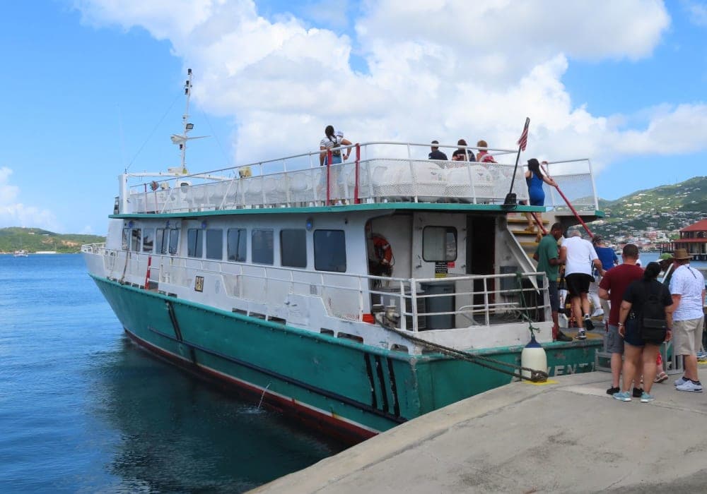 個人でセントジョン島へ行くのを調べたところ、二人で$100程度でしかも片道でタクシー2回、フェリー1回と乗り換えが多く、船のエクスカーションだと二人で$130と許容範囲だったのと、下船したすぐ横からチャーターフェリーでセントジョン島へ行き、決められた車で島内観光したのですごく楽で効率良かったです。 ただ、セントジョンのビーチで過ごす人も同じフェリーで往復するので滞在時間が短いかもしれません。が、島内観光であればそれが終わったあとフェリーが出発するまでの約40分程度買い物が出来るので充分でした。