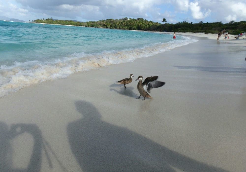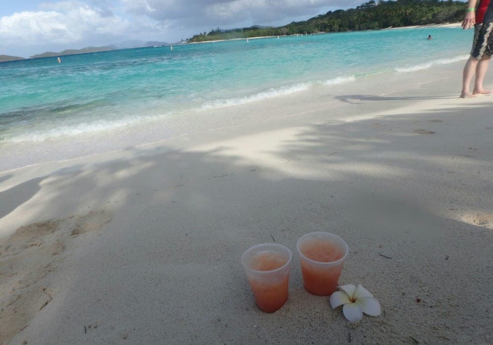 下船して港にいた乗合バスでビーチを目指します。 今回行ったのはセントトーマスでも人気の高い「Magens Beach」へ。 片道$8、エントランスフィー$4、一人当たり往復$20でした。 出発は10時半、30分弱で到着して、ピックアップは14時。 白砂のビーチと青い海を満喫。 港からビーチへは山を越えることになりますが、頂上からの港の眺めは圧巻です。