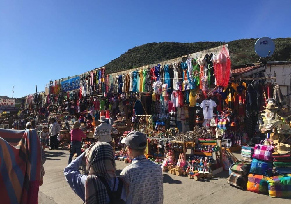 下船場所からすぐにショッピングができる建屋があります。そこを出ると、ダウンタウンまでのシャトルバスが待っており、往復で$4+チップ$1と大変手軽に利用できます。12月とは思えない明るい陽射しでしたが湿気も少なく、徒歩でメキシコの雰囲気を感じながら手軽に散策を楽しめます。 12月でしたので荷物には防寒衣を準備して行きましたが、観光には、ほぼ不要でした。