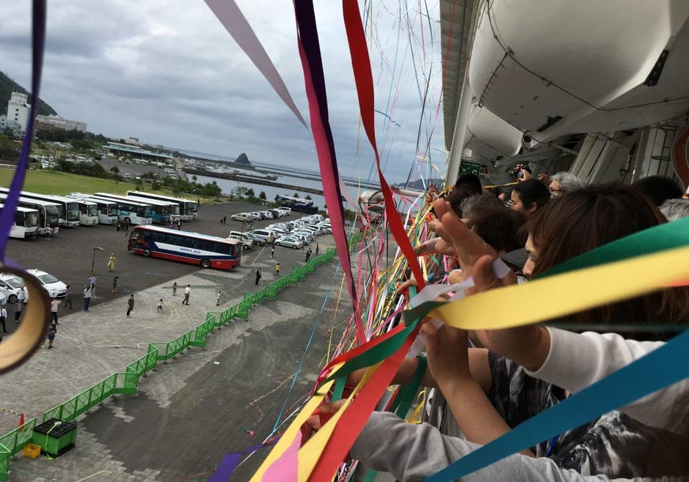 近くの商店街と民謡が聴ける観光施設に行きました。徒歩圏内ではあまり見る場所は多くなく、さっと観光して船に戻り、船内で楽しみました。 出港時のお見送りイベントは大掛かりで感動します。