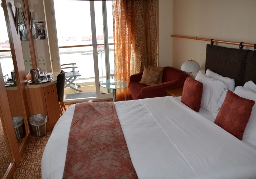 海側バルコニー付きキャビン利用、ただ建造が2001年のため空調が壊れたり、洗面の水が錆で少し黄色ぽかったりしたが、いずれも対応してくれ問題なく過ごせた。