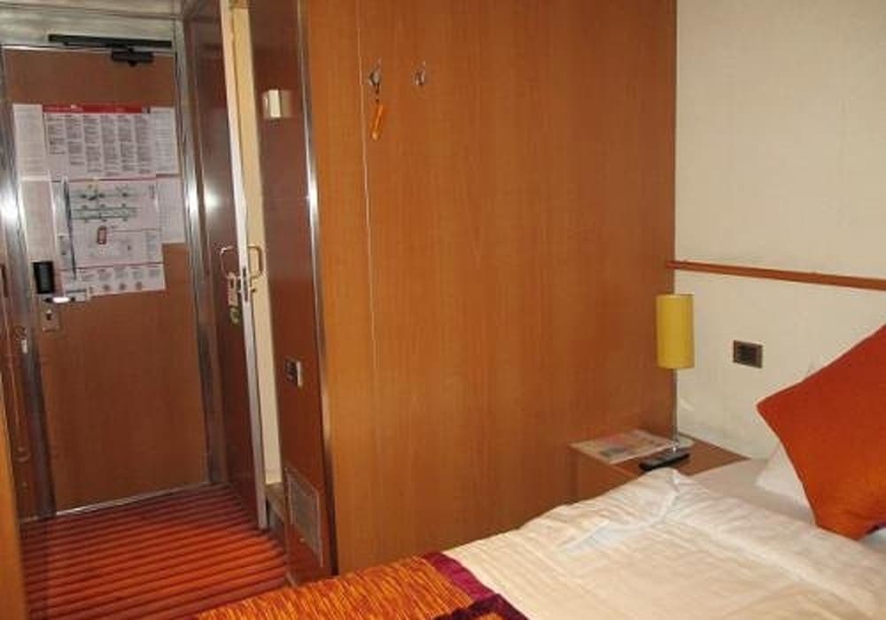 お値段重視で内側でしたが、びっくりするくらい狭くシングルベッドもかなり細かったです。 キャビンは寝るだけなので気になりませんが、それでもちょっと驚きました。 壁に備え付けられたカウンターのようなテーブルとベッドサイドチェストが唯一の物を置ける台。 クローゼットもあるのでスーツケース等は仕舞えますが、ちょっとしたも...