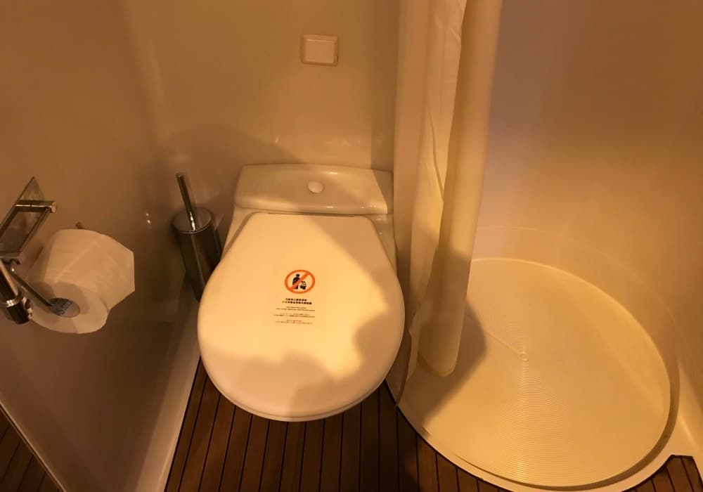 私は部屋には寝にかえるだけだったので、内側キャビンで全く問題ないと感じたが、友人は次回はバルコニーのある部屋でゆっくり海を眺めていたいといっていた。 不便な点としては、色々なブログを見て分かっていたので自分でハンガー持参したものの、部屋のハンガーが他で使えないのはやはり不便と感じた。 余談ではあるが、トイレの便器...