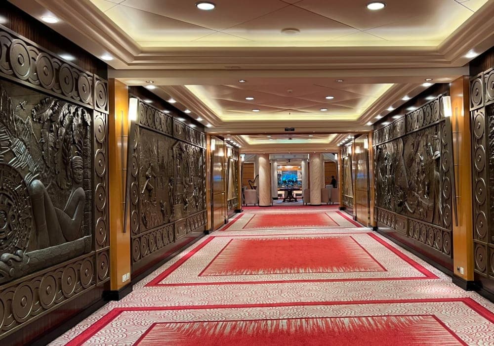 ファミリー向けではないのでアクティビティーとは言えませんが、船内の至る所にさまざまなパネルや装飾品があり、豪華な印象を受けました。特にグランドロビー周りは広々としていて他の船にはない空間ですね。