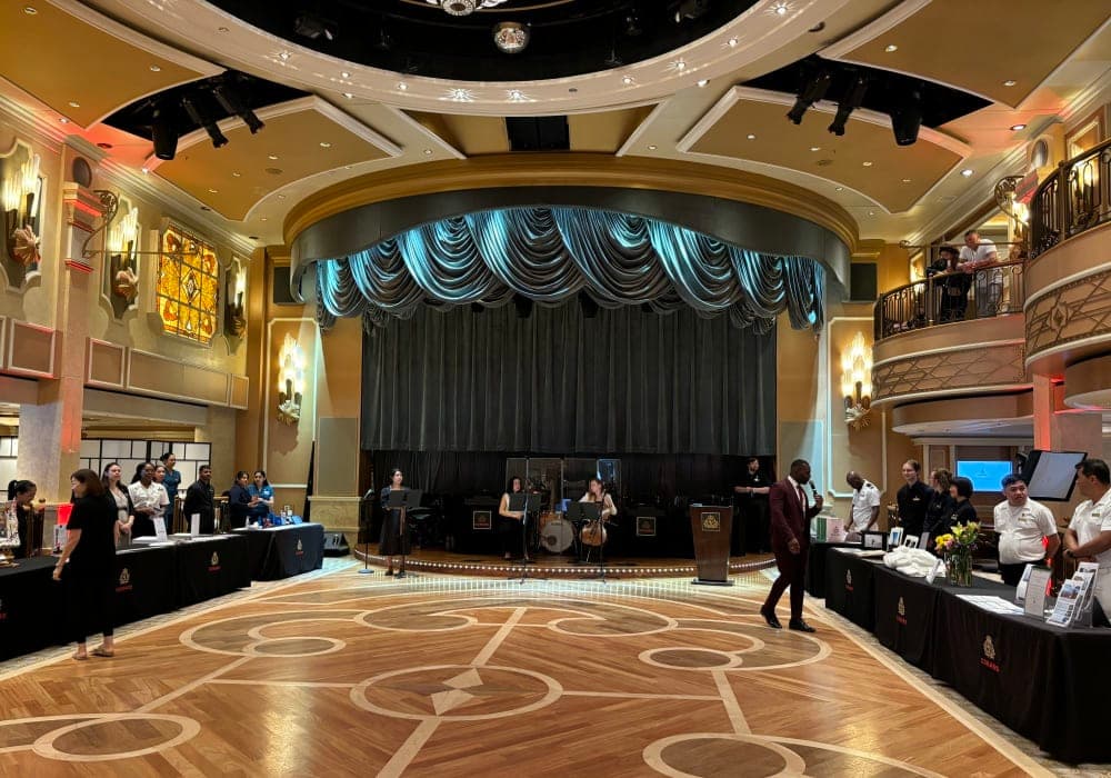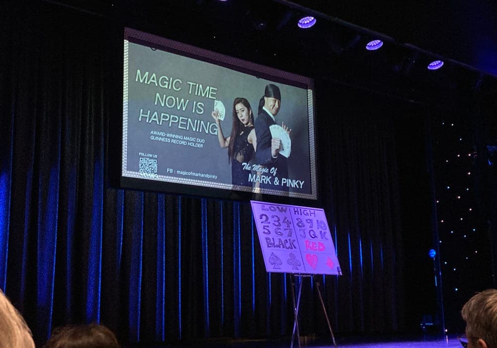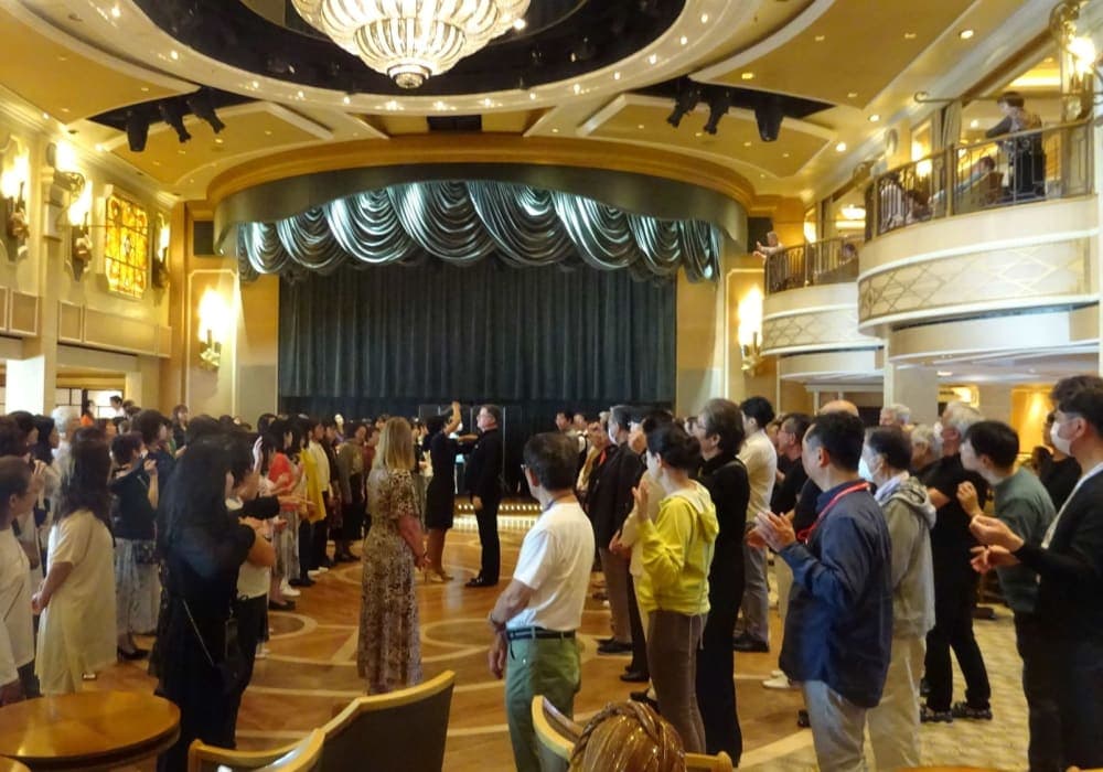 【ショー】ロイヤルコートシアター:邦船や他の外国船のように上級客室専用スペースとして事前確保されたエリアが無いので平等感がありました。他の外国船に比べて無理な席取りは少ないように感じました。初日とマジックの日以外は2回鑑賞しました。 ○ロイヤルコートシアターカンパニー:昨年のメンバからは一新され、男女各2名のシン...