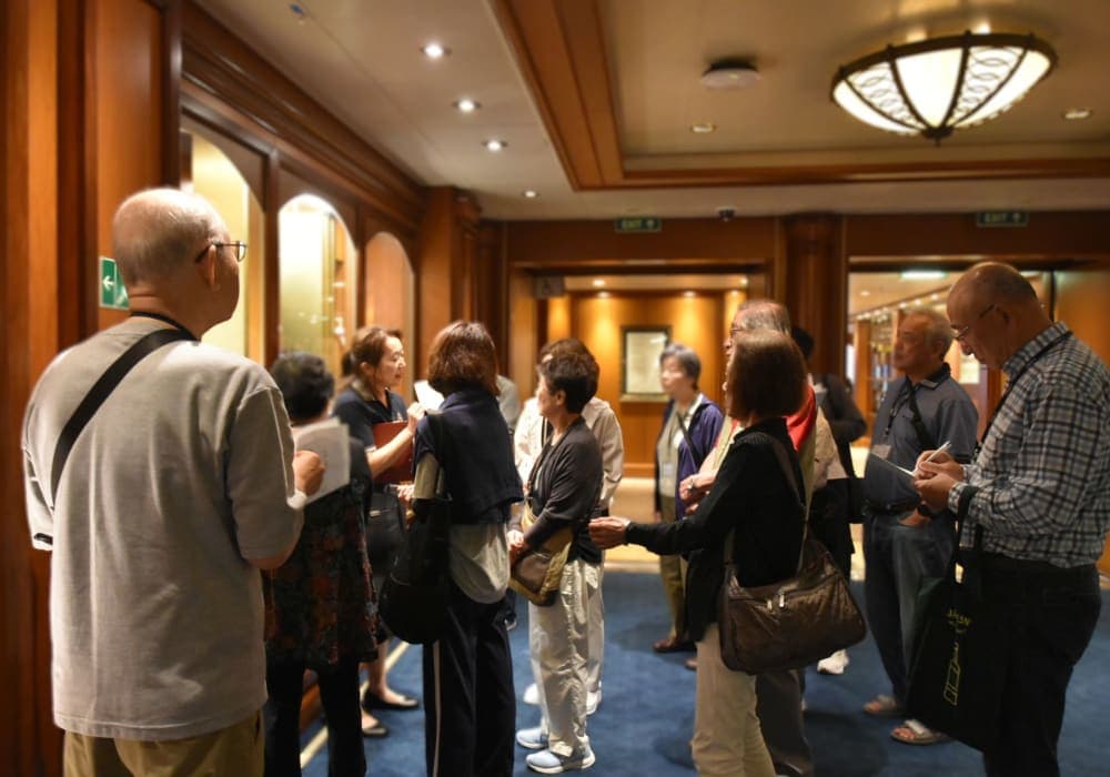 ■アクティビティ 講演系が殆どなので興味がないテーマの場合は時間を持て余します。 キュナードの歴史系の講演に2回参加しましたが、英語の解説の情報量の3分の1程度しか日本語訳されていないのでかなり勿体ない仕上がりです。 講演内容は決まっているでしょうし、事前に日本語訳をわかりやすく簡潔な文章で翻訳し、日本語の補足資...