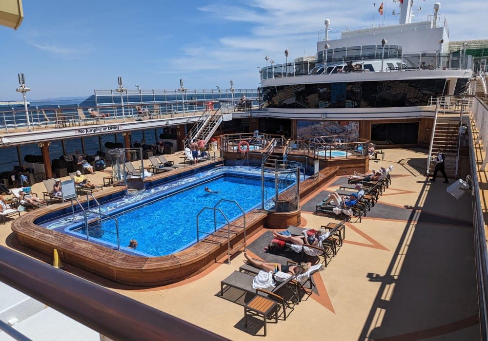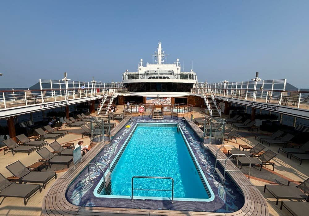 内装が美しく船内を歩くのが楽しかったです。夜のプールデッキのライティングも素敵でした。 一方でカトラリーを包むナフキンに髪の毛がついていたりブッフェの食器の洗いがあまかったり、全体的にお掃除は甘いイメージ。 【船内イベント・アクティビティ】 日中イベントは講演会、曲当てクイズ、ダンスフィットネス、朝夕のストレッチ...