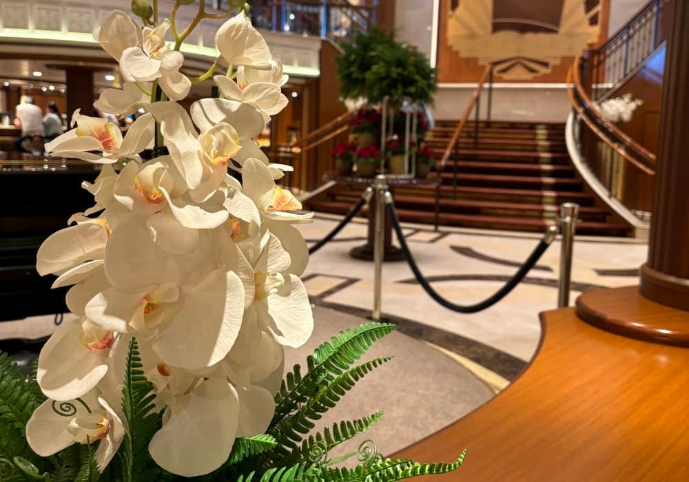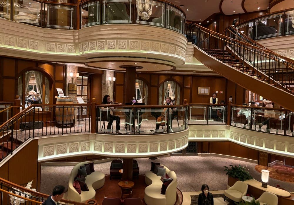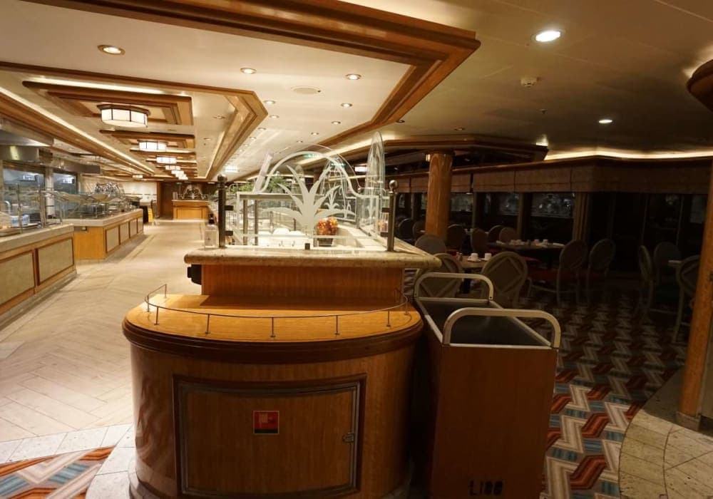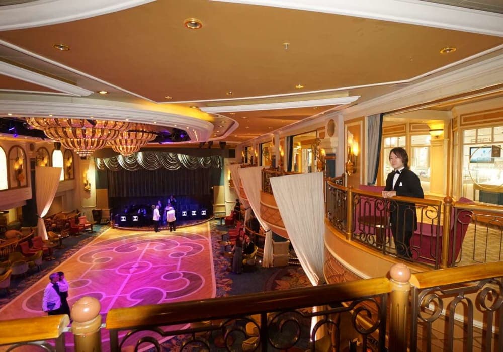 木材を多用したパブリックスペースの内装は見事で何度乗っても感心します。 ただ、ロイヤルコートシアターに出演される方のレベルは下がってきているように思いましたし、設備に目新しいものは無いのが少々残念でもありました。 なお、飲料水の給水スポットがデッキ2とデッキ9の2か所に有りましたが、デッキ2に比べてデッキ9は水の...
