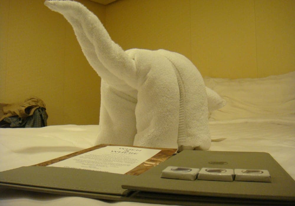 インサイドのシンプルなお部屋ですが 作り付けのクローゼットのほかにベッド下の引き出しが便利でした。ソファがなくて 手狭でしたが 殆ど部屋には いないので あまり気にはなりません。 バスルームのお掃除も丁寧で シンクの配管まで ピカピカでした。 毎日のタオル動物は 本当にレベルが高くて 毎日大事によけて飾っておきました。