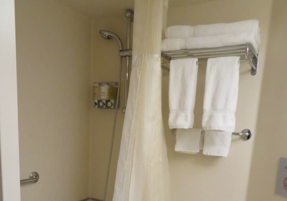 海側客室は海側一面が透明ガラスになっており、視界は広くベランダ客室のような感じ。HALの優れた点でもある海側客室にはバスタブが備えられていてクローゼットも広く使い勝手が良く快適に過ごしました。