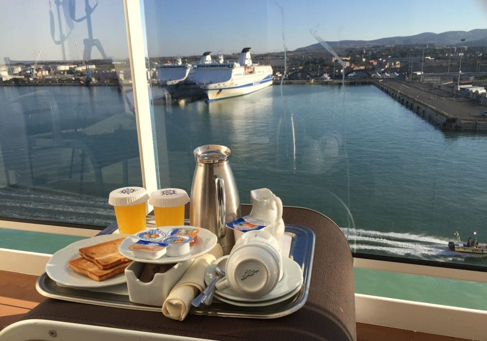 今回はアウレアクラスなのでベッラ、ファンタスティカクラスに比べて少し大きめの部屋で二人掛けのソファーが置いてあり、快適に過ごせました。 引き出しやハンガーは沢山あるので、最初にスーツケースから全て出して引き出しなどにしまい、空のスーツケースはベッドの下に置くと広く使えると思います。 前回も前方を選び静かだったので...