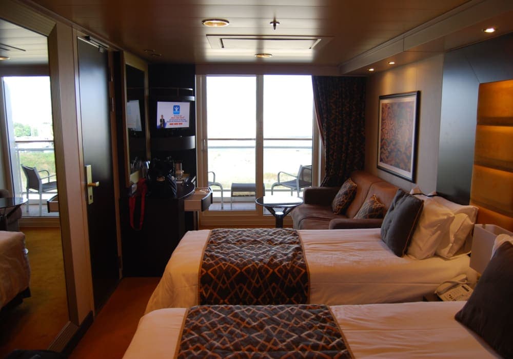 ヨットクラブのバルコニーの最上階の船首の部屋を選択しました。 バルコニーも部屋も通常よりも広いです。特にバルコニーは広いですが船首のためかぜが強くあまりくつろげません。(バトラーに頼んでプールベットを運び入れている部屋もありました。) あとは、通常のヨットクラブのバルコニーに部屋と使用は一緒で、広いウォークインク...