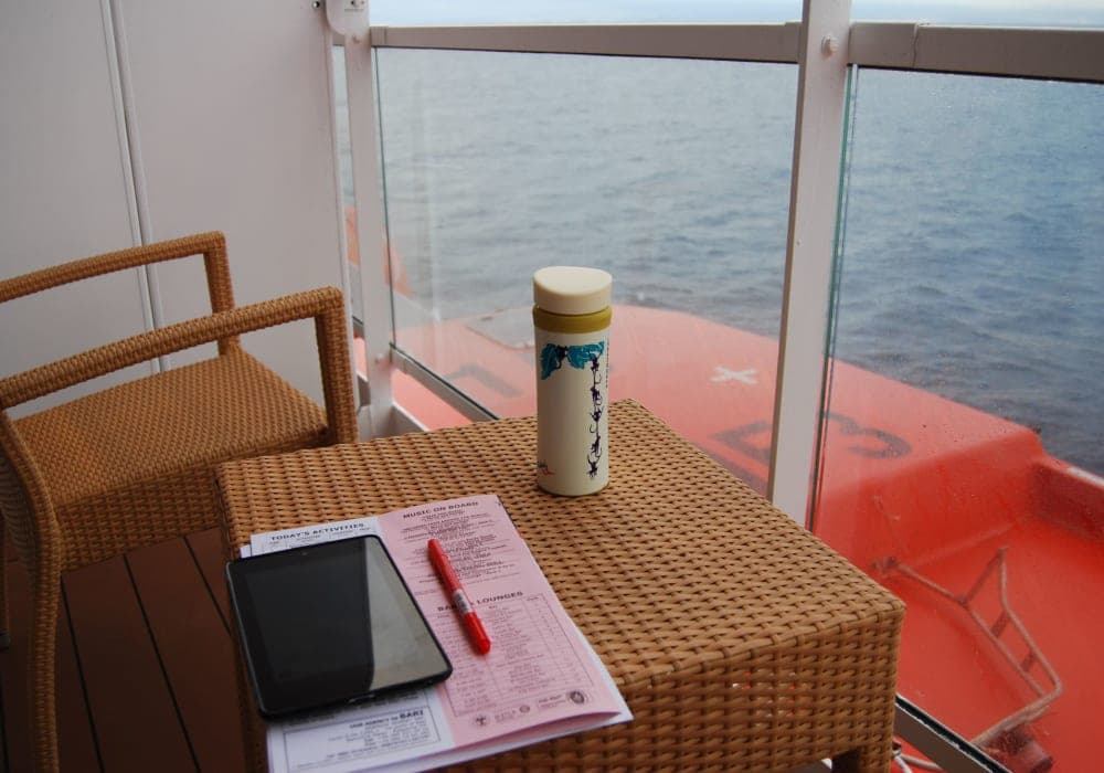 海側バルコニーだったので、気持ちは良かったですが、バルコニーで過ごす時間はそう長くはありませんでした