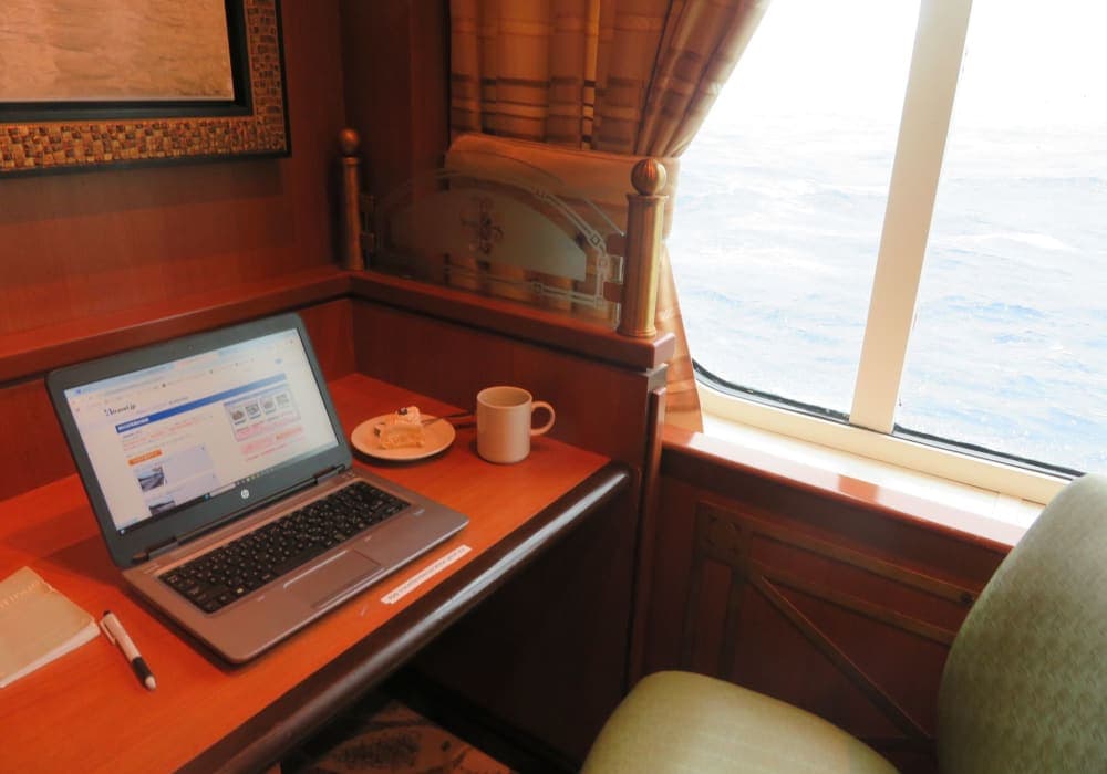 インターネット・カフェでは船内でのパソコンの操作方法やスマホによるニュージーランド旅行者電子申告手続きなどをスタッフが親切丁寧に教えてくれて助かった。 インターネット・カフェは居心地も良く一番のお気に入りの場所となった。 ラウンジでゆっくりとくつろぎたいと思ってもソファや椅子が少なく立って過ごす事もあった。 プリ...