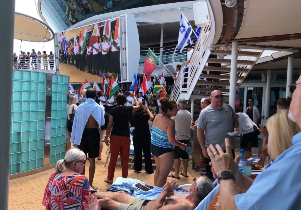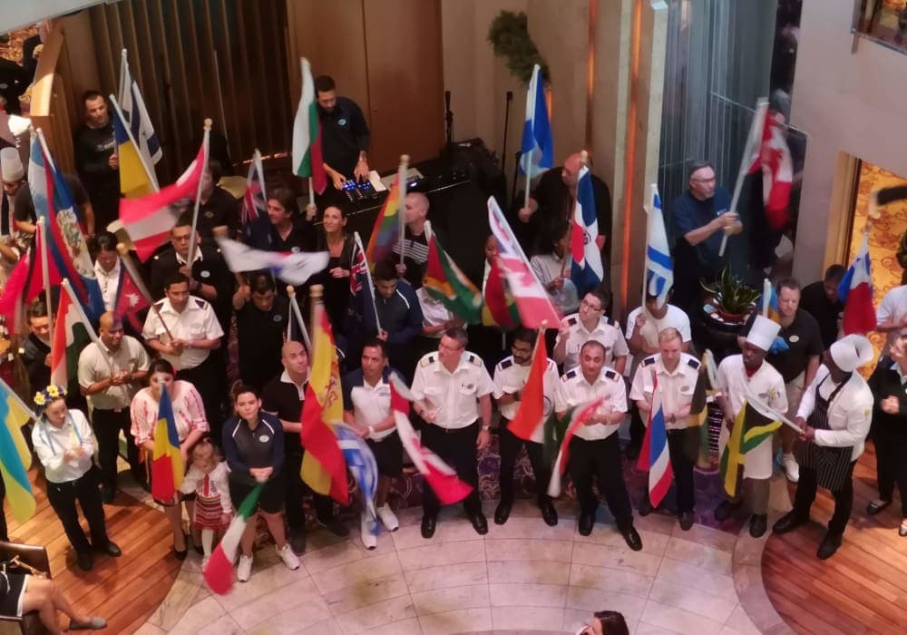 呑んべえの自分としては,あちこちにバーがあるのが良かった. とにかく乗客を「退屈させない」ため,30分おきに様々なアクティビティがあった. クルーたちの御国自慢ショーは面白かった.