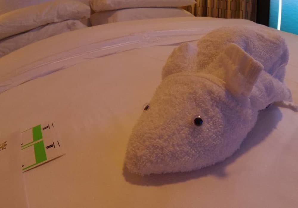 大きな問題はなかった。 スタッフも笑顔で挨拶。 但し、日によってクリーニングの完成度に差があった。 また、タオルアートを作って楽しませてもらえた。