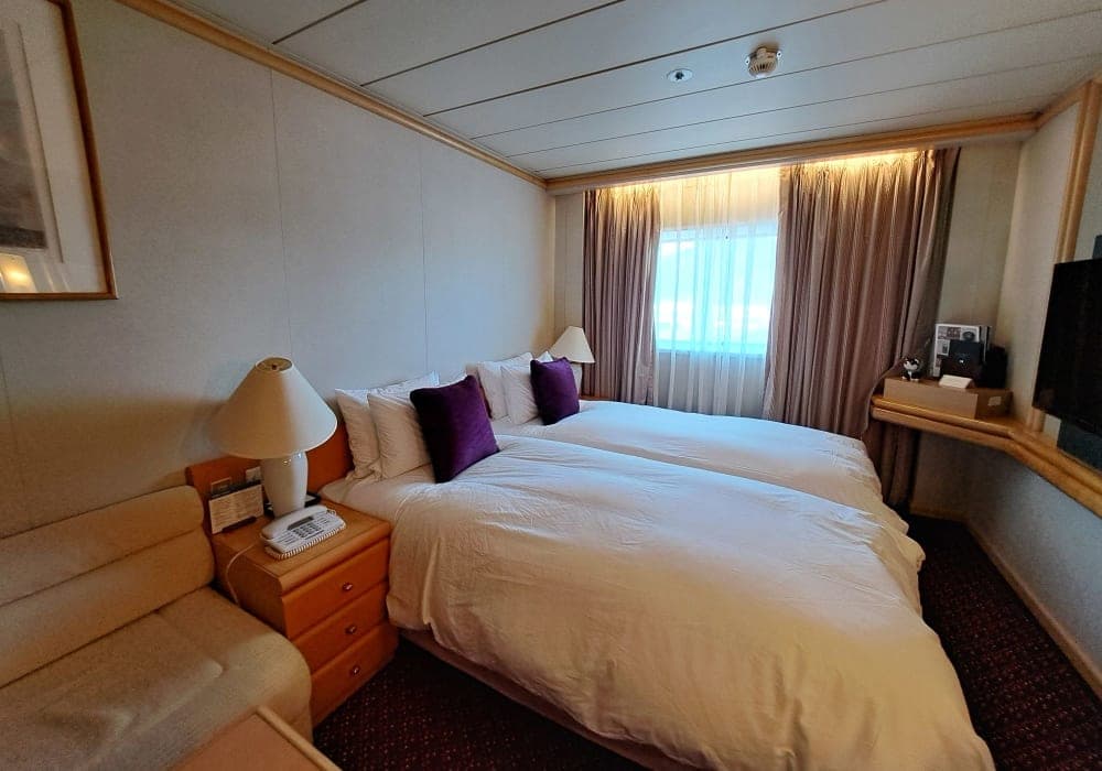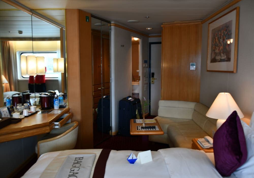 知人に誘われて、一度は飛鳥に乗ってみるかと。おつきあいでスイートに乗りました。知人のお力でだいぶ割引していただきましたが、それでも高かった!