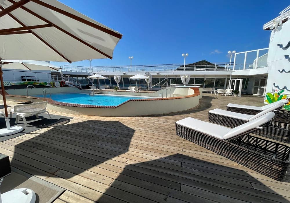 新設の露天風呂は最高です。今までの船上の大浴場も良かったですが、それとは比較にならないくらい快適な体験でした。 できれば終日航海のある時の利用をお勧めします。停泊中は利用できませんので、美しい形式を見ながらの利用は今回のような昼過ぎ出港か終日航海日でなければ体験できません。 美しい景色を見ながら少し涼しげな海風を...