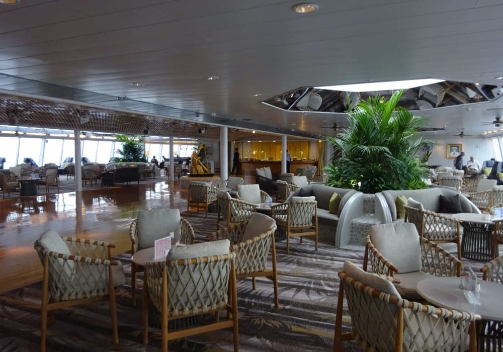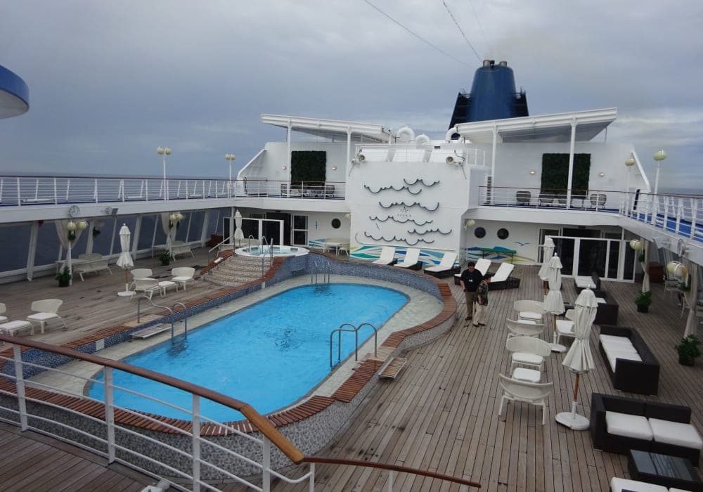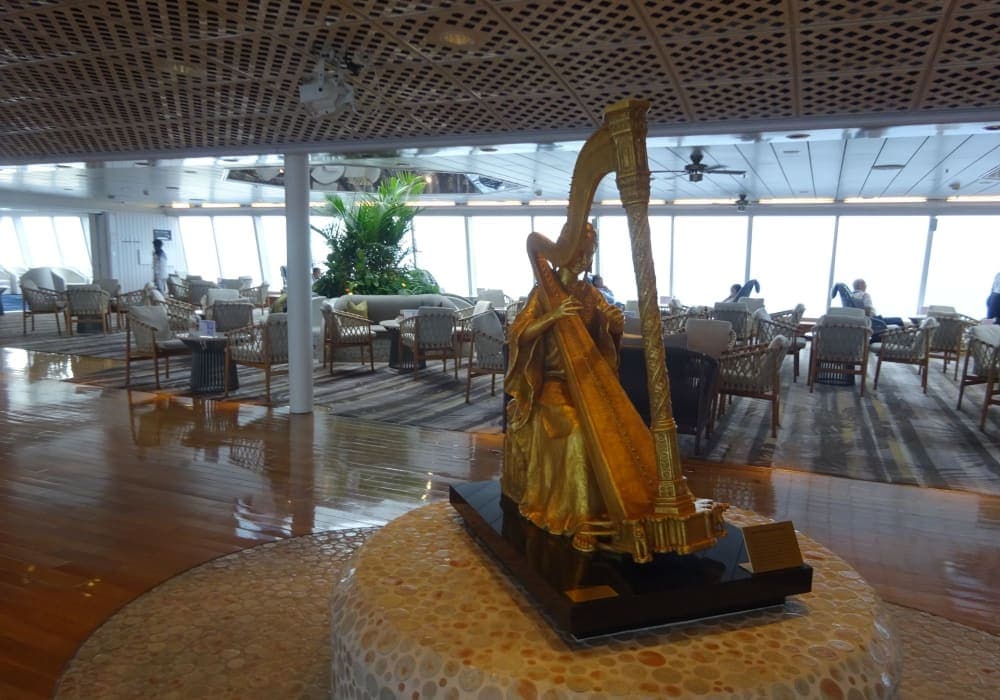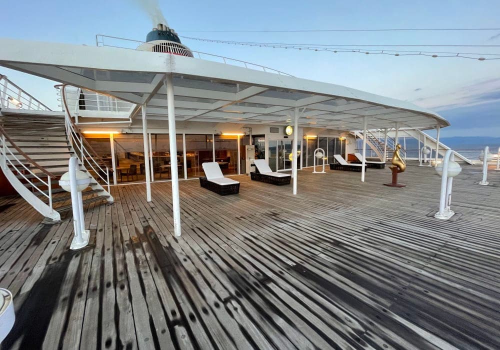とにかく露天風呂が最高! これは日本船ならではですね。人気がないのか、ゲストが少ないのか? 独り占めできていい気分でした。 船尾が上から下までパブリックスペースとなっており、自由に往来できるのがとてもいい。最近の新しい船はこういう作りではないので新鮮だった。