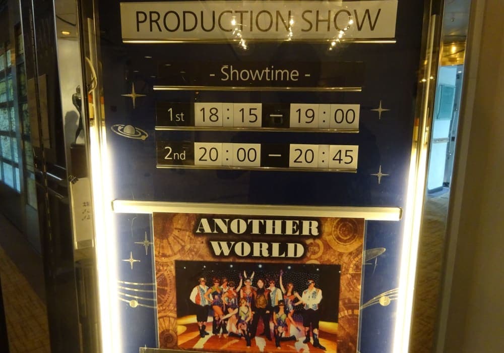船内で行われるショーは他の船と同様、大きく分けて、常時乗船しているスタッフのプロダクションショーとゲストエンターテイメントのショーに分類されます。 今回は2組のゲストによるショーでしたが、ゲストにより当たり外れが大きかったです。 また船の大きさがからステージの大きさが制限されショーは小ぶりになりますが、その中でも...