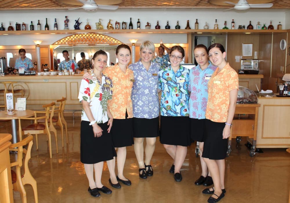 フレンドリーで気さくなクルーは定評通り。サービスは行き届き日本船の良さを実感