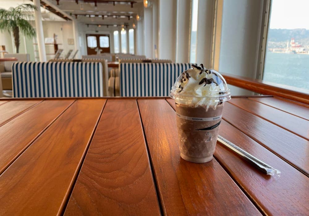 車椅子生活になって二度目のクルーズは新幹線で長距離移動して、神戸港から出航する日本丸瀬戸内ナビゲートクルーズ 前回の横浜出航よりハードルの高くなったクルーズ✌️ リハビリの成果ですね😃 大型船にむかない海域は小型船がベターなのはエーゲ海で経験済み。日本丸でショコリキサー飲みながらが ベストチョイス👌
