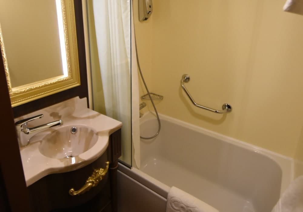 やや不満新しく、シャワーブースもカーテンではなくクリアドアがついていてよかった。洗面台は他の船よりかなり狭く感じた。